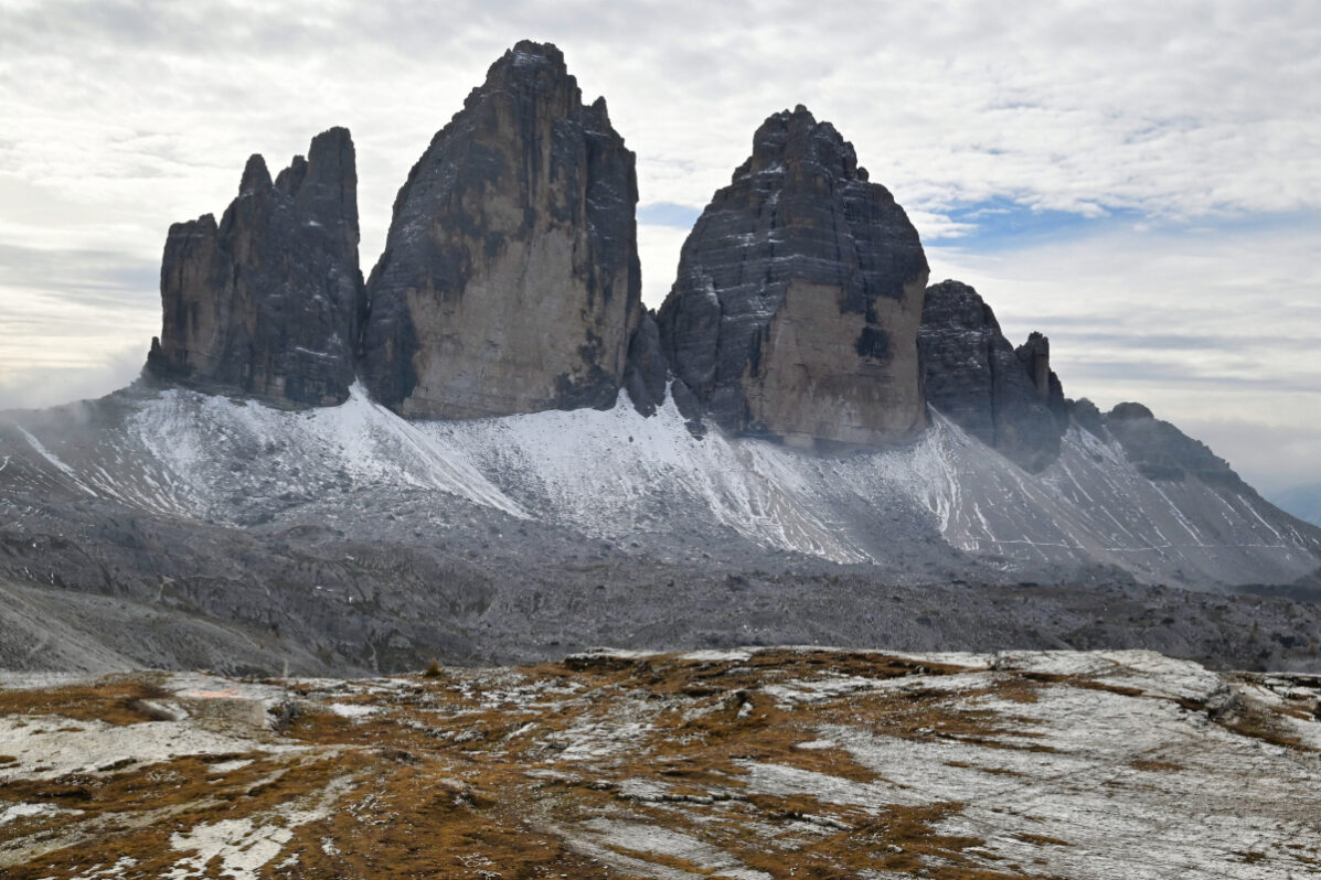 Veže mám za chrbtom, keď od tunelov počujem nadšené výkriky. Otáčam sa a okamžite chápem, prečo sa ľudia tak tešia. Tre Cime sa rozhodli aspoň na pár minút ukázať. Všetci žhavia foťáky a využívajú dieru v oblačnosti. Mňa nevynímajúc. Však keď už som tu… Síce som ich tento rok videla z rôznej vzdialenosti a rôznych smerov už asi štyri razy (naposledy včera), ale ďalšia do zbierky neuškodí. Od chaty vidím ponáhľať sa ďalších ľudí, ktorí chcú využiť viditeľnosť, ale kým sa dostanú až k dieram v skale, je po srande. Tre Cime sú opäť zahalené v oblakoch.